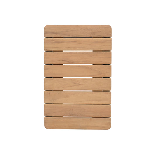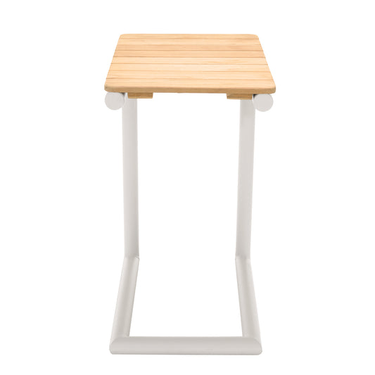 Portals C-Shape Side Table in Light Sand Matte Finish and Natural Teak Wood Top