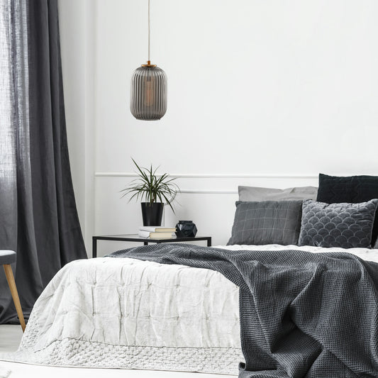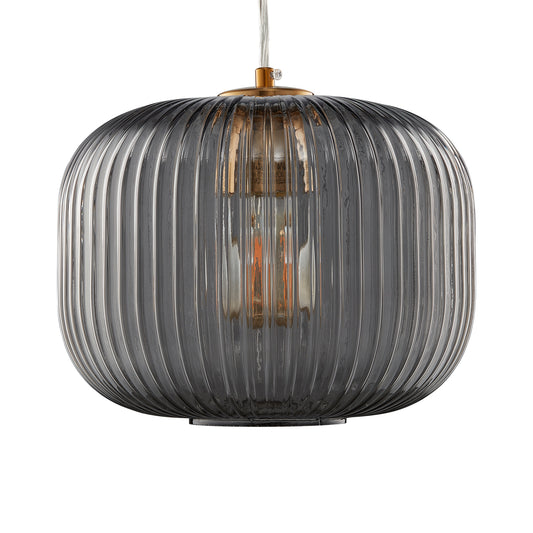 Carro Home Circulus Smoky Gray Ribbed Glass Pendant Light