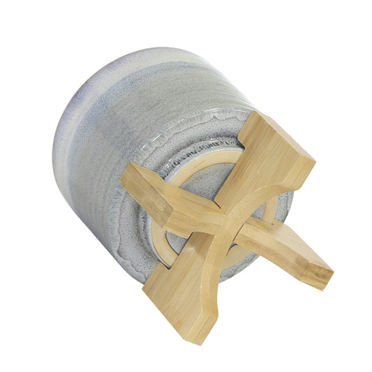 Ceramic 5" Flower Pot W/ Wooden Stand