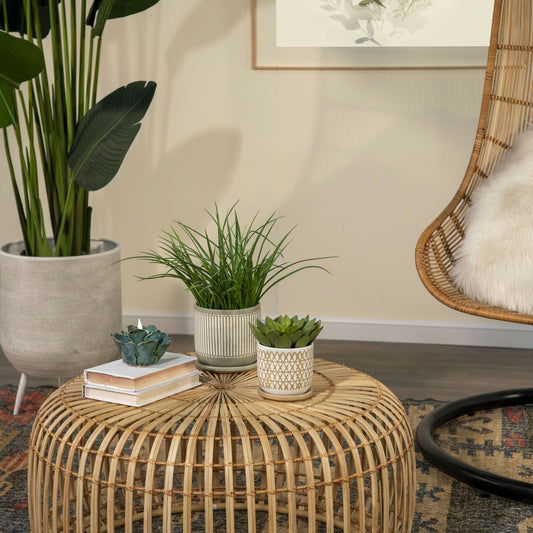 Ceramic 5" Bubbles Planter W/ Saucer, Beige