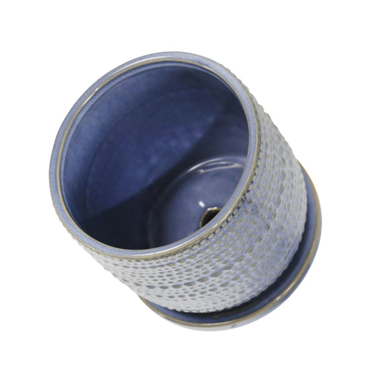 Ceramic 5" Textured Planter W/ Saucer, Blue