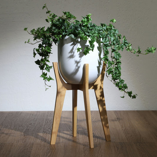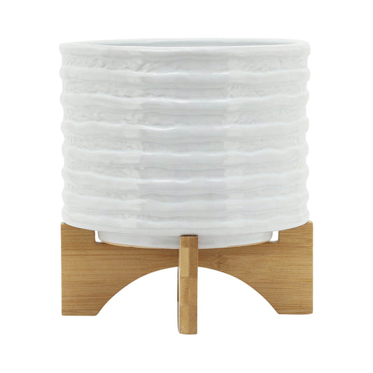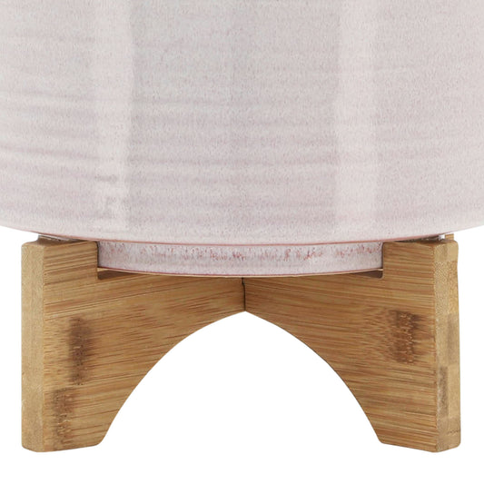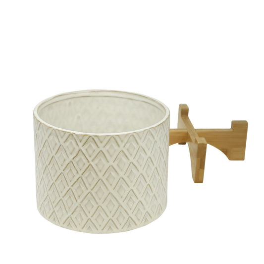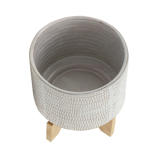 Ceramic 8" Planter On Wooden Stand, Ivory