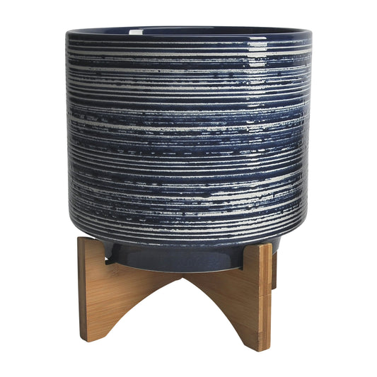 Ceramic S/2 8/10" Planter On Stand, Blue