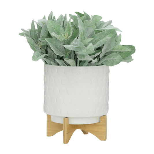 Ceramic S/2 8/10" Planter On Wooden Stand, White
