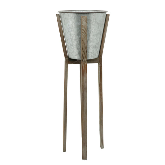 Metal S/3 11/12/13" Round Planters W/ Wood Stand