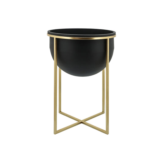 Metal S/2 11/12" Planters W/ Stand, Blk/gold