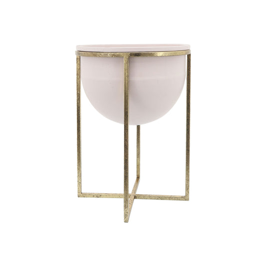 Metal S/2 11/12" Planters W/ Stand, Pink/gold