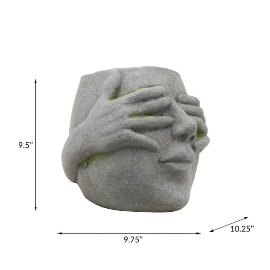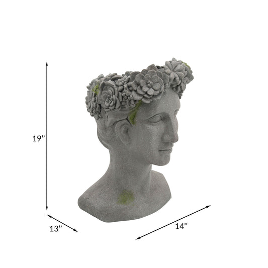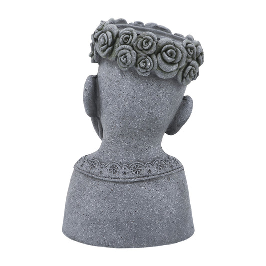 Resin, 18"h Daydreaming Lady Planter, Gray, Eyes Closed