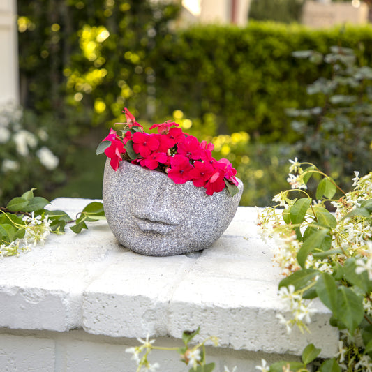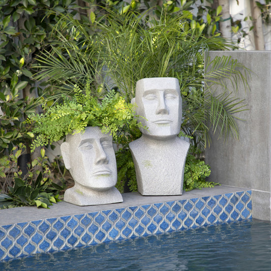 Sold outResin, 20"h Moai Bust Planter, Gray