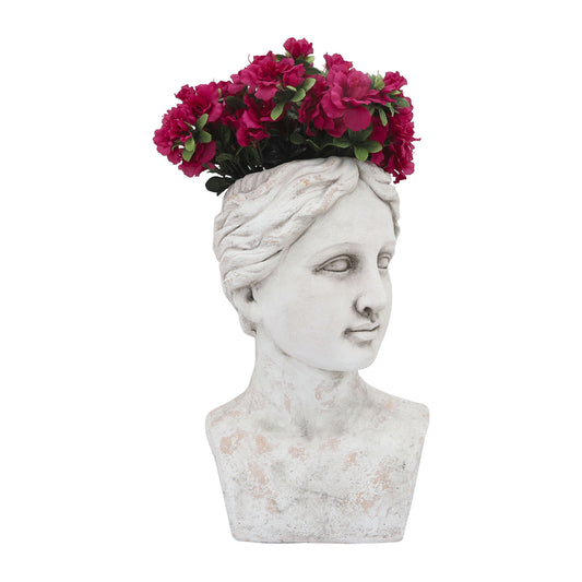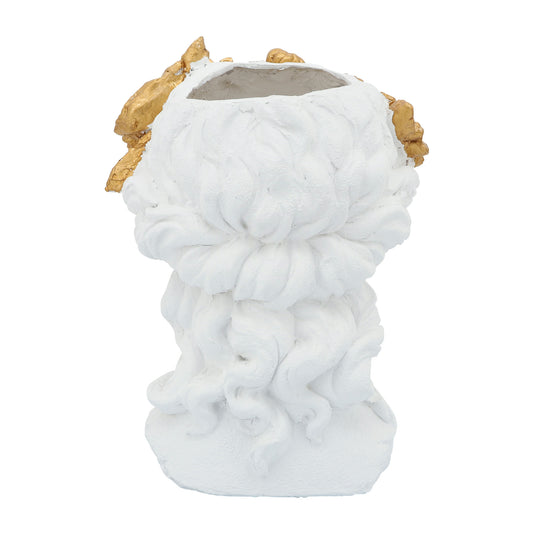 Resin, 16"h Daisies Lady Head Planter, White/gold