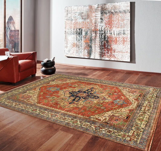 Pasargad Home Serapi Collection Hand-Knotted Rust Wool Area Rug - 8'11" X 9'1"