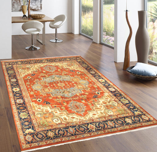 Pasargad Home Serapi Collection Hand-Knotted Rust Wool Area Rug - 6'1" X 8'11"