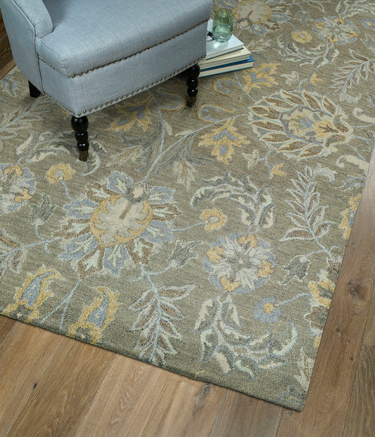 Kaleen Helena Collection Pewter Gray OliveGreen Area Rug 5' x 7'9"
