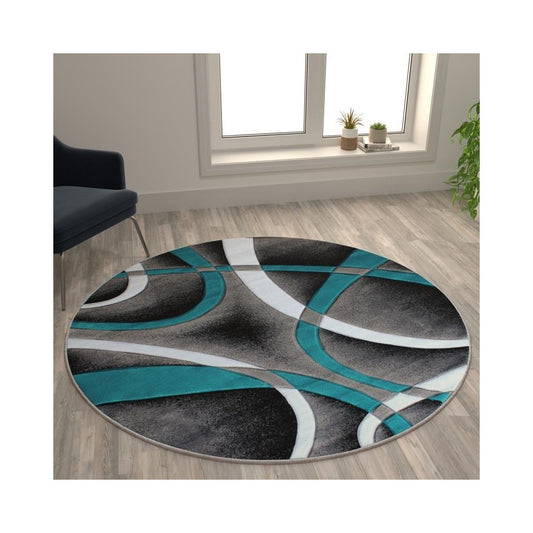 Flash Furniture Atlan Collection 5x5 Turquoise Abstract Rug KP-RG951-55-TQ-GG