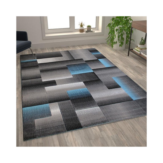 Flash Furniture Elio Collection 6x9 Blue Block Area Rug ACD-RGTRZ861-69-BL-GG