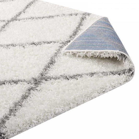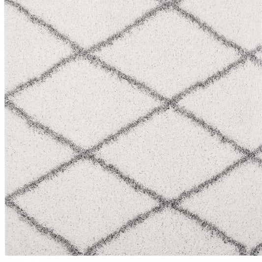 Toryn Diamond Lattice 5x8 Shag Area Rug, Ivory and Gray