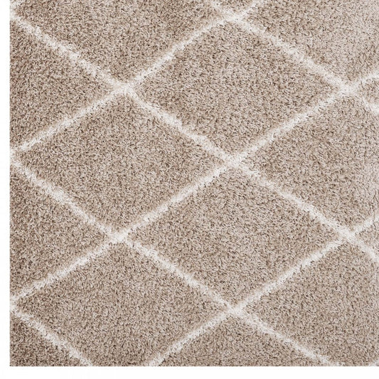 Toryn Diamond Lattice 5x8 Shag Area Rug, Beige and Ivory