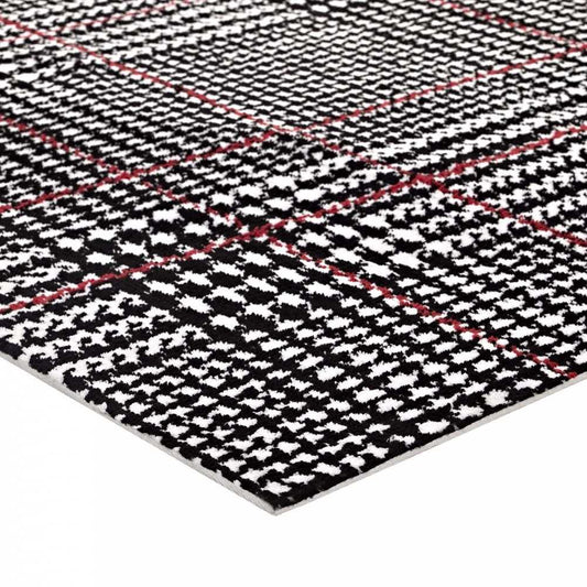 Kaja Abstract Plaid 8x10 Area Rug, Ivory, Black and Red