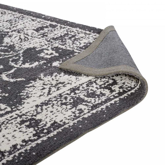 Kazia Distressed Floral Lattice 5x8 Area Rug, Dark Gray and Ivory