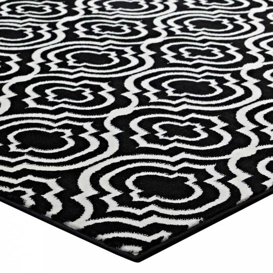 Frame Transitional Moroccan Trellis 5x8 Area Rug, Black and White