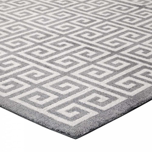 Freydis Greek Key 5x8 Area Rug, White and Light Gray