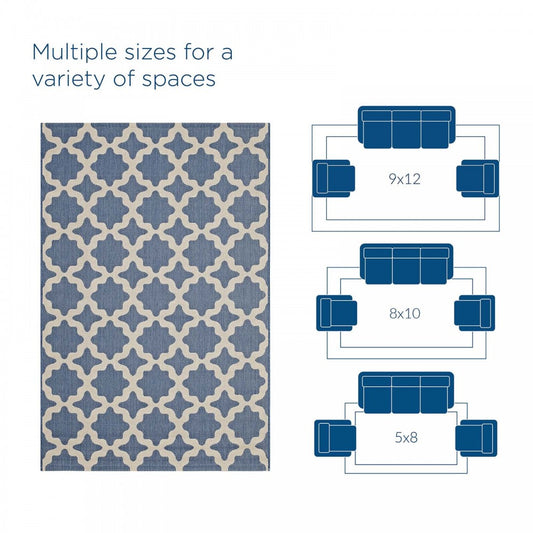 Cerelia Moroccan Trellis 9x12 Indoor and Outdoor Area Rug, Blue and Beige
