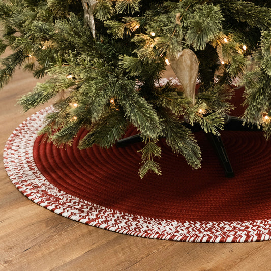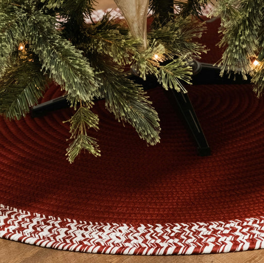 Bordered Under-Tree Christmas Reversible Round Rug - Red 45†x 45â€
