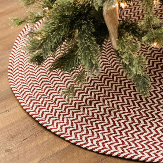 Chevron Christmas Under-Tree Reversible Round Rug - Red/White 45†x 45â€