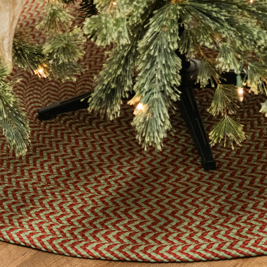Chevron Christmas Under-Tree Reversible Round Rug - Green/Red 45†x 45â€