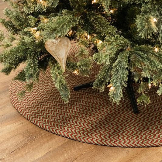 Chevron Christmas Under-Tree Reversible Round Rug - Green/Red 35†x 35â€