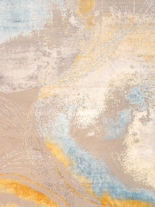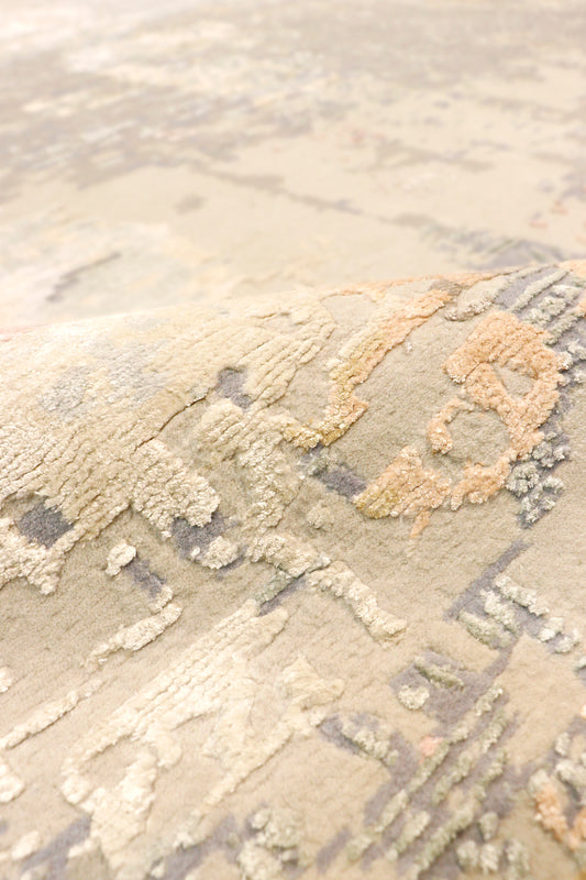 Pasargad Home Modern Collection Beige Silk & Wool Area Rug 10'2" X 13'9"