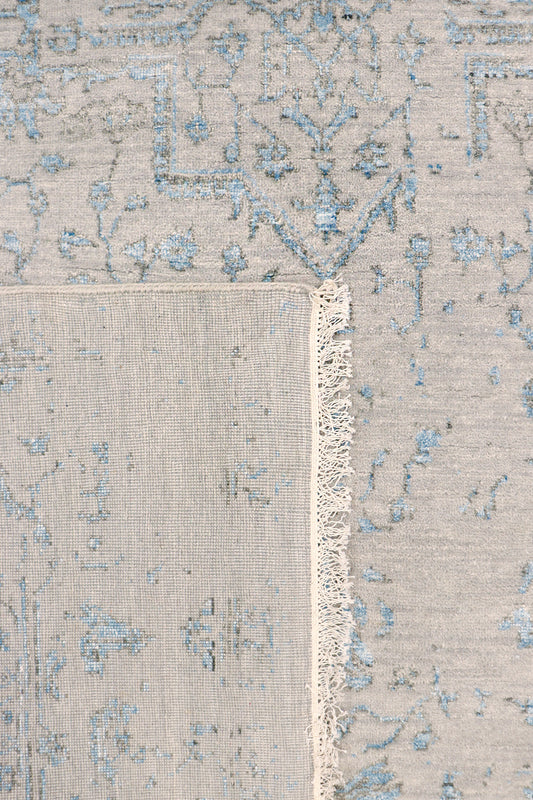 Pasargad Home Transitional Collection Silver Bamboo Silk & Wool Rug 8'1" X 9'11"
