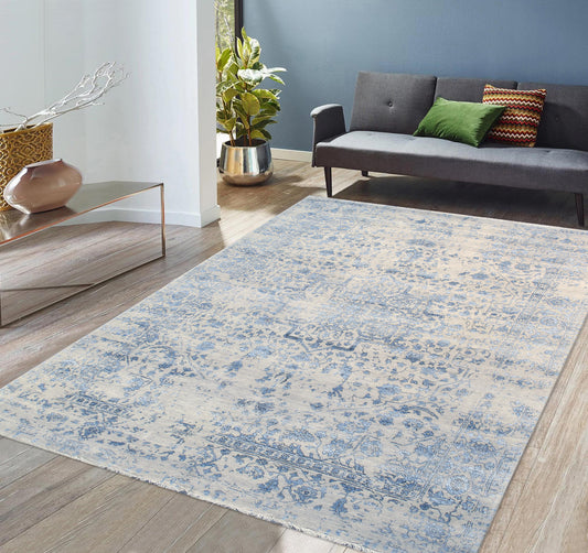 Pasargad Home Transitional Collection Silver Bamboo Silk & Wool Rug 5'9" X 9'0"