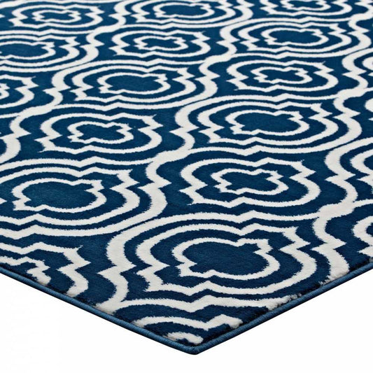 Kazia Distressed Floral Lattice 5x8 Area Rug, Dark Blue and Ivory