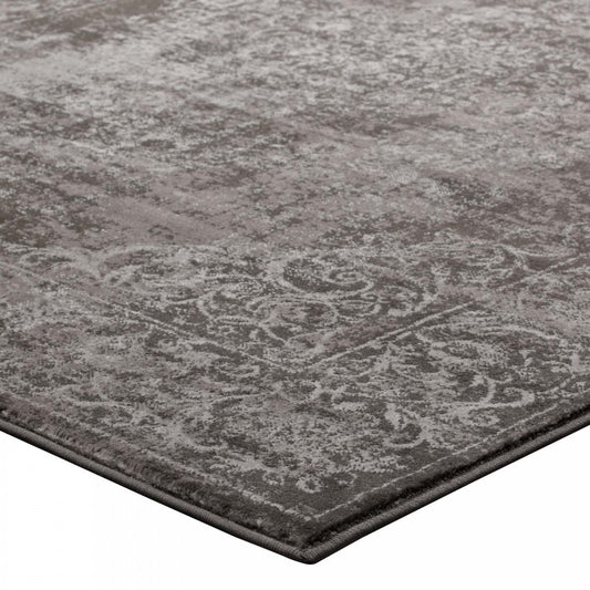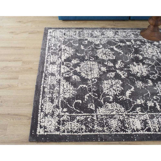 Kazia Distressed Floral Lattice 5x8 Area Rug, Dark Gray and Ivory