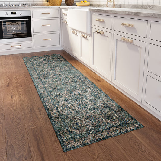 Indoor/Outdoor Marbella MB5 Mineral Blue Washable 2'3" x 7'6" Runner Rug