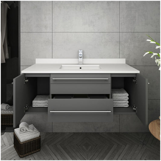 Lucera 42" Gray Wall Hung Modern Bathroom Cabinet w/ Top & Undermount Sink