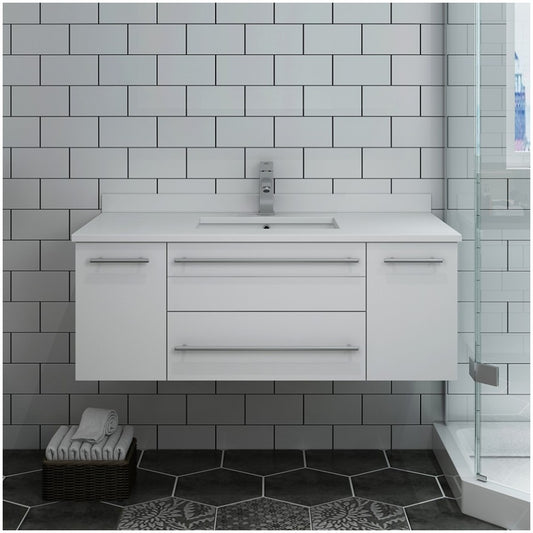 Lucera 48" White Wall Hung Modern Bathroom Cabinet w/ Top & Undermount Sink