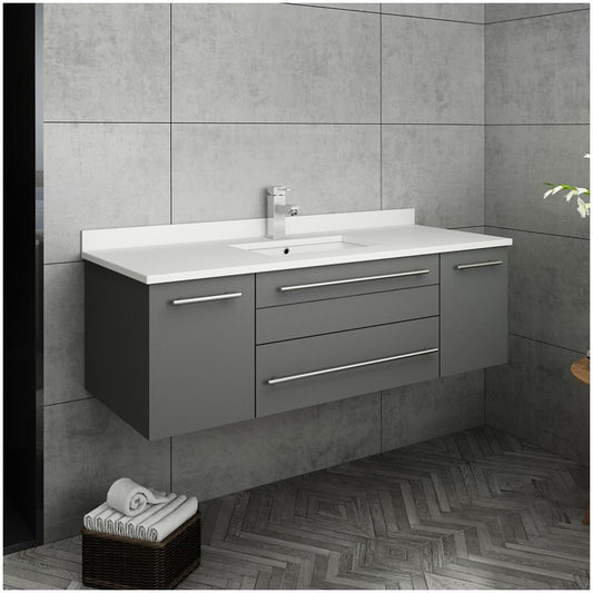 Lucera 60 Gray Wall Hung Modern Bathroom Cabinet w/ Top, Double Undermount Sinks