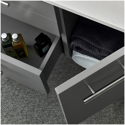 Lucera 60" Gray Wall Hung Modern Bathroom Cabinet w/ Top & Double Vessel Sinks