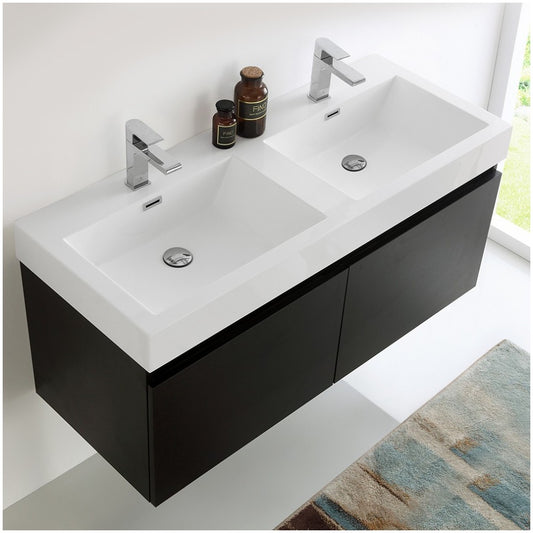 Mezzo 48" Black Wall Hung Double Sink Modern Bathroom Cabinet w/ Integrated Sink