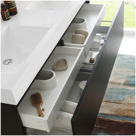 Mezzo 60" Black Wall Hung Double Sink Modern Bathroom Cabinet w/ Integrated Sink