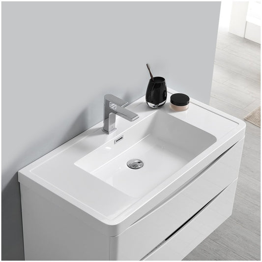Valencia 40" Glossy White Wall Hung Modern Bathroom Vanity w/ Medicine Cabinet