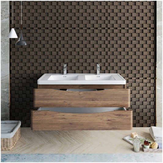 Tuscany 48" Rosewood Wall Hung Modern Bathroom Cabinet w/ Integrated Double Sink