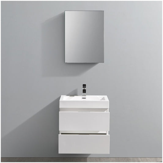 Valencia 24" Glossy White Wall Hung Modern Bathroom Vanity w/ Medicine Cabinet