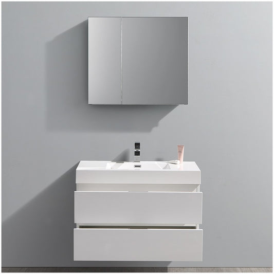 Valencia 36" Glossy White Wall Hung Modern Bathroom Vanity w/ Medicine Cabinet