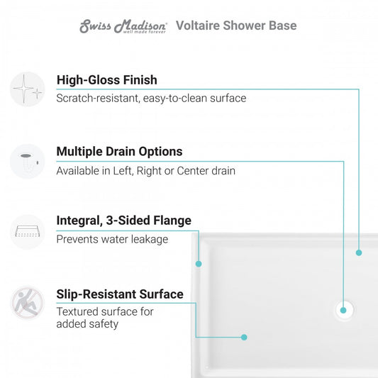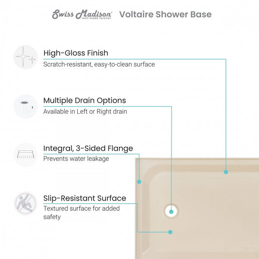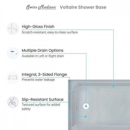 Voltaire 60 x 36 Acrylic White Single-Threshold, Right-Hand Drain, Shower Base
