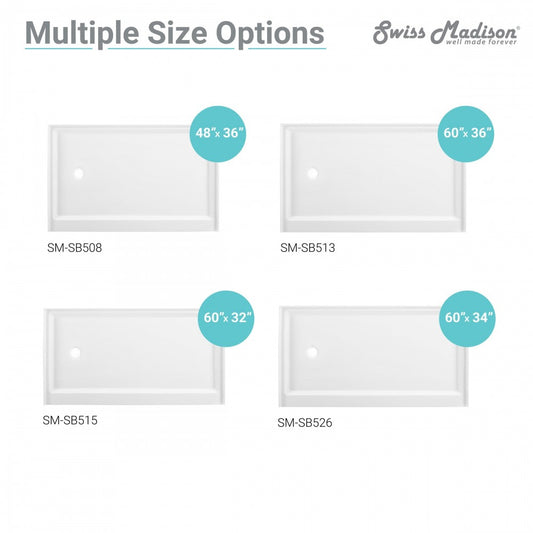 Voltaire 60 x 36 Acrylic White, Single-Threshold, Left-Hand Drain, Shower Base