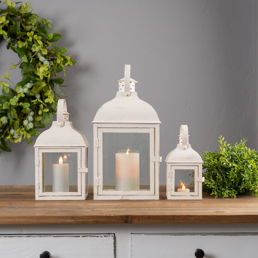 Lantern (Set Of 3) 7.5"-14"H Iron/Glass, White