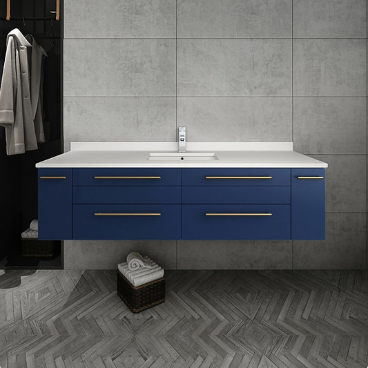 Fresca Lucera 60" Royal Blue Wall Hung Single Undermount Sink Bathroom Cabinet